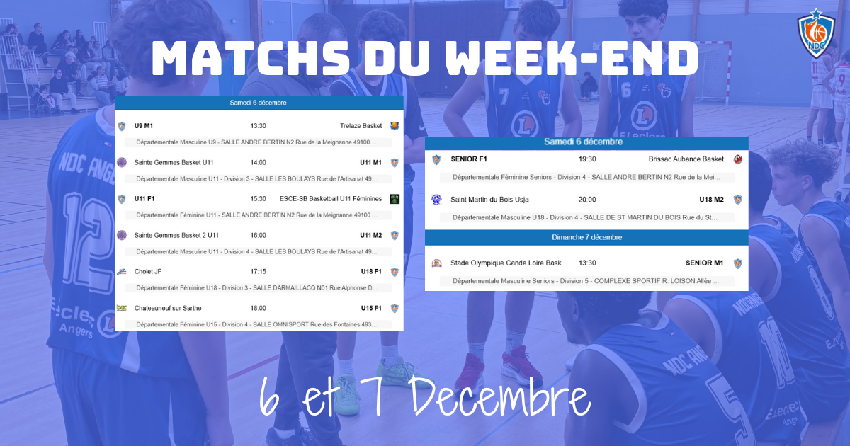 Jours de matchs – 6 et 7 Novembre Bonjour à tous, Voici le programme des matchs du week-end. Nos U9M1, U11F et Seniors F évolueront à […]