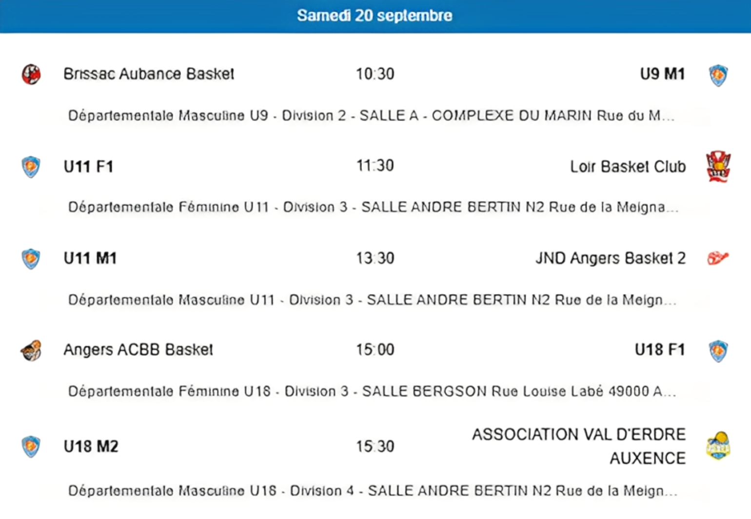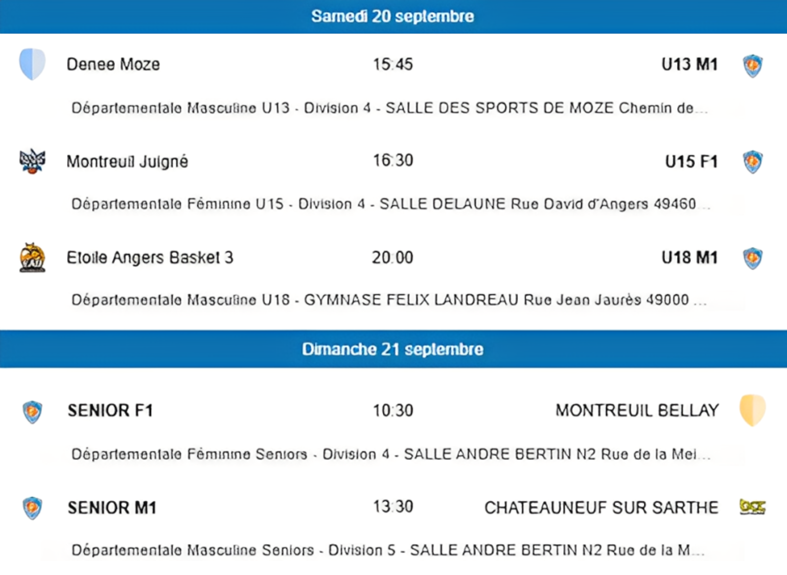 Nos U11F, U11M, U18M2, Seniors F et Seniors M évolueront à domicile, tandis U9M, U13M, U15F, U18F et U18M1 que nos se déplaceront à l’extérieur.
