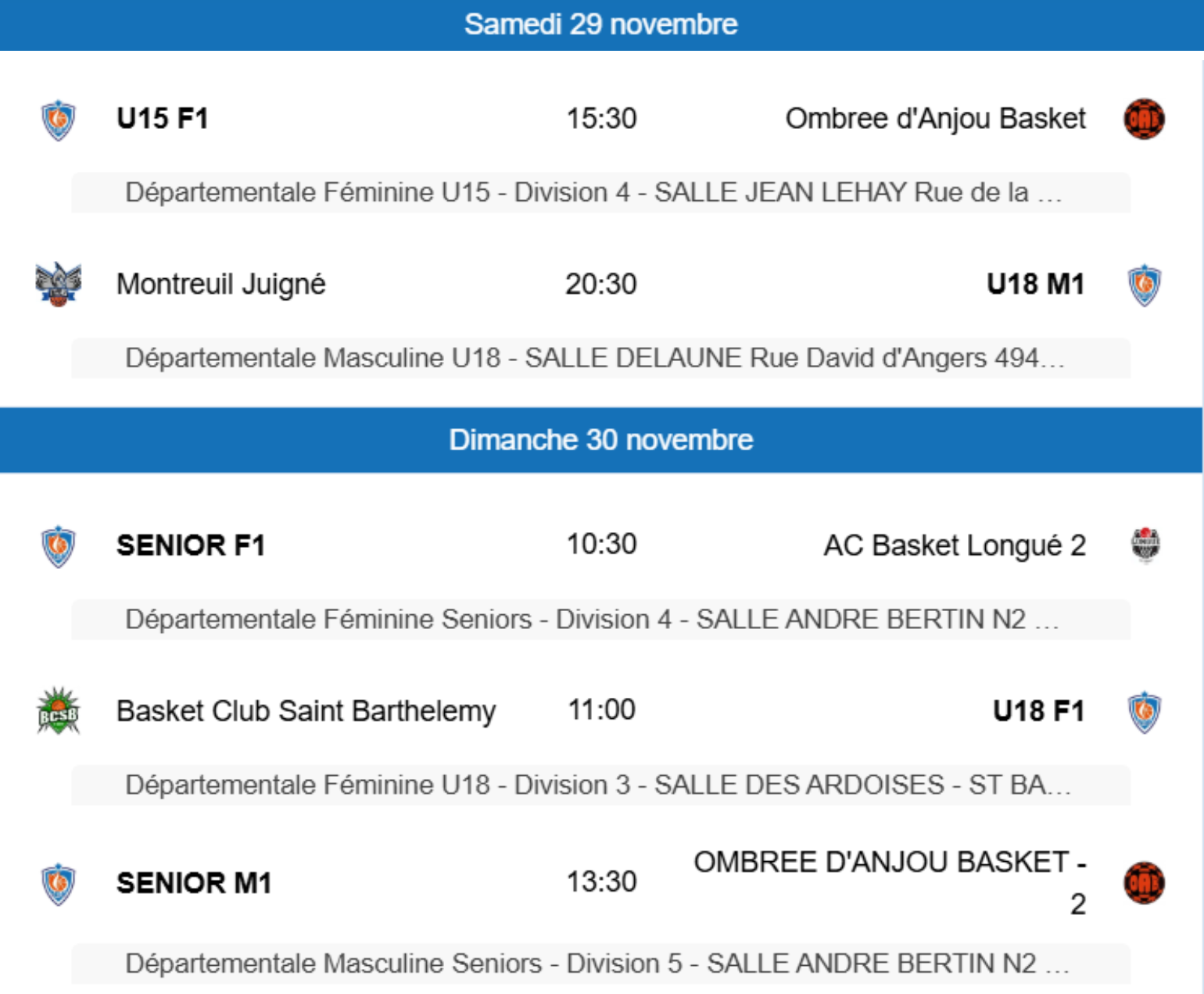 Nos U11M, U11M2, U13M, U15F, U18M2, Seniors F et Seniors M évolueront à domicile, tandis que nos U9M1, U11F, U18F et U18M1